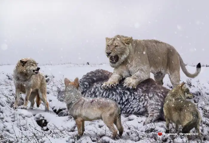 Американские львы были охотниками на дичь крупного калибра: мамонты, бизоны, лошади — вот кто был их основной жертвой.
