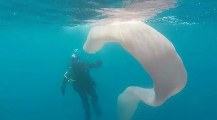 Нет, это не гигантский червь-убийца, это просто огромная колония сальп. Каждая особь длиной меньше сантиметра.