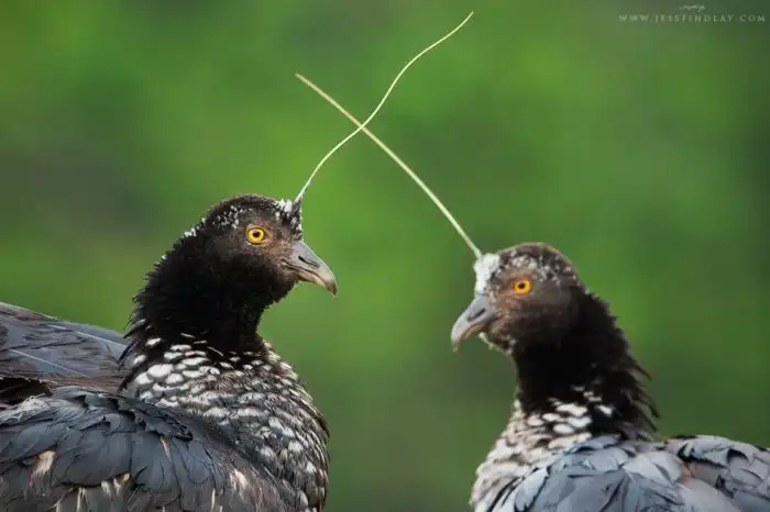 Вы небось уже представили эпические битвы рогоносцев? Остыньте: вырост на башке и здесь птицам не пригождается. Да и самки выбирают партнёра не по длине причиндала, а опираясь исключительно на свои представления о прекрасном.