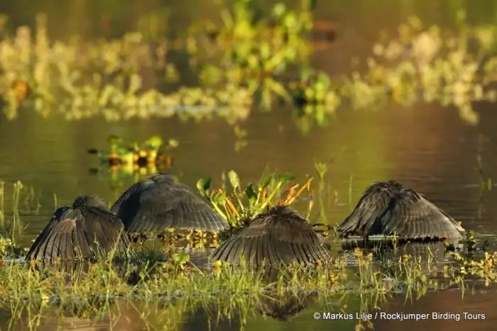 Из-за этой особенности второе название чёрных цапель — зонтичные.