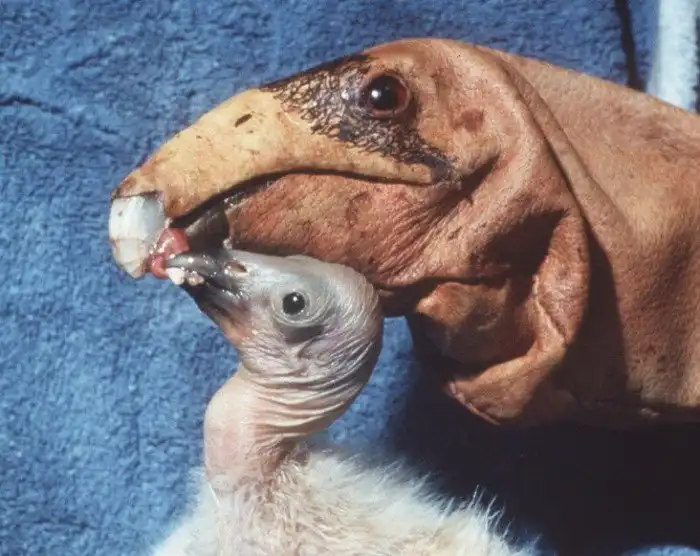 Птица с чёрной головой — это недоросль кондора. От своих родителей он уже почти не отличается, но при этом до сих пор живёт с ними в одном гнезде.