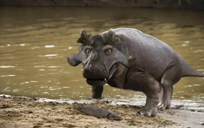 Внешне эстемменозух, обитавший примерно 267 миллионов лет назад на территории современной России, больше всего напоминает некий странный гибрид гиппопотама, трицератопса и носорога. Ни к динозаврам, ни к млекопитающим он не относится, а является представителем так называемых зверообразных или тероморфов.