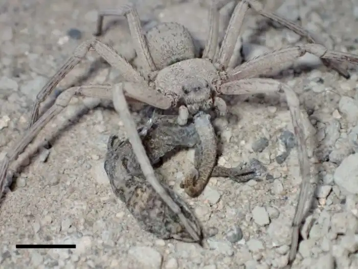 По месту обитания назвать бы его кораблём пустыни, но по размерам он даже на катамаран не тянет: тельце паука всего от 1.5 до 5 сантиметров. Но размеры — не главное. Паукан резво охотится на жуков, сверчков и даже скорпионов!