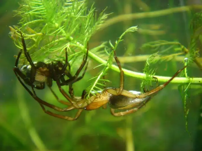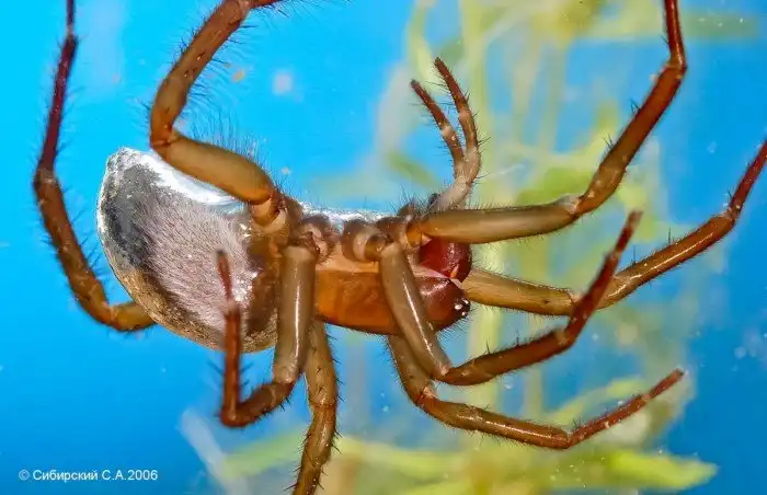 Этого жуткого гибрида аквамена и спайдермена можно найти в любом водоёме Евразии. Да, даже в деревенской речке, в которой ты так любишь купаться с самого детства, живи теперь с этой мыслью. Животина прекрасно приспособлена к водной среде: 1,5 сантиметровое членистоногое отрастило на своих задних лапках плавательные щетинки, превратив ноги в функциональный аналог ласт. Пригодились пауку и волоски на брюшке. Зачем? Чтобы дышать под водой!