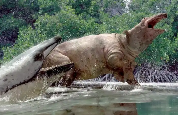 Большинство хищников не могли позволить себе напасть на взрослого меритерия. Единственный, кто смог бы съесть 200 килограммовую тушу, — базилозавр — гигантское хищное китообразное.
