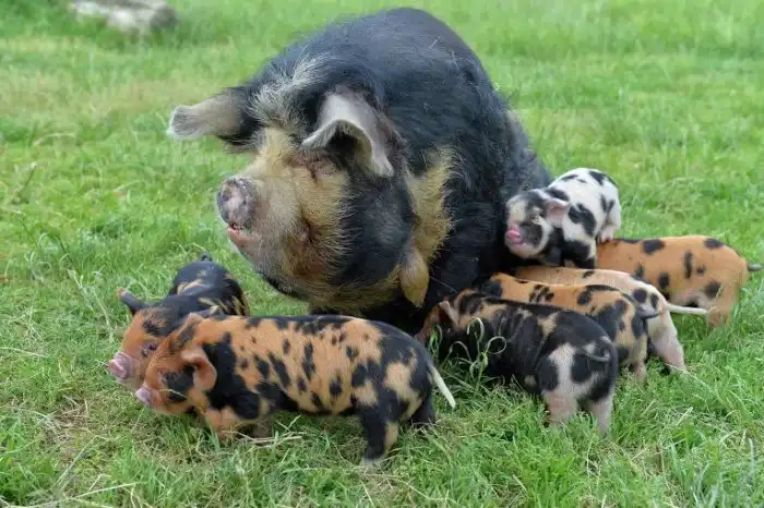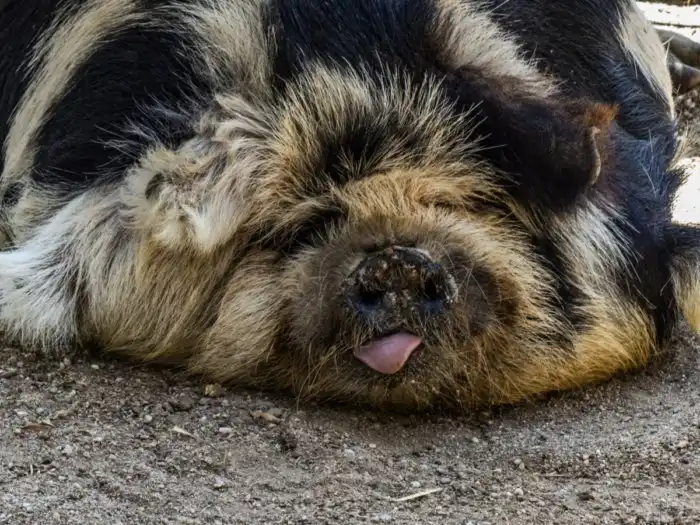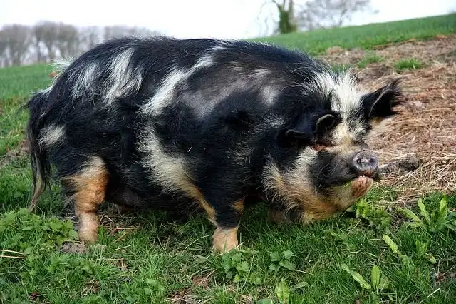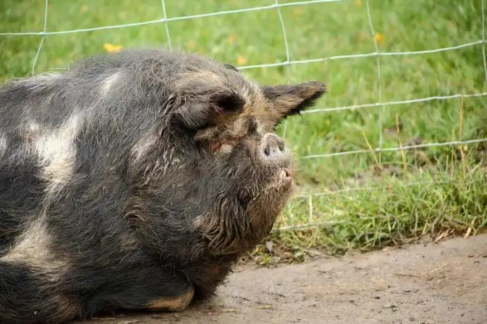 Новозеландцев смело можно называть самыми прямолинейными наименователями, ведь свинки действительно вышли пухлыми. При размере до метра свинки отъедаются до 70-100 кило. Курносая мордаха и короткие ножки прибавляют +100500 к шарообразности. Да и густая пестрая шерсть самых разных оттенков, от черного до рыжего, придает животине объема.