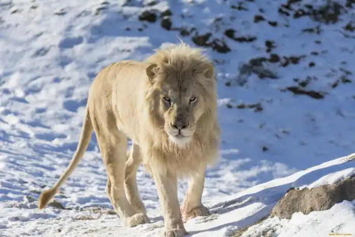 А что, отличная маскировка. Вопреки расхожему убеждению, львы прекрасно чувствуют себя в снегах.