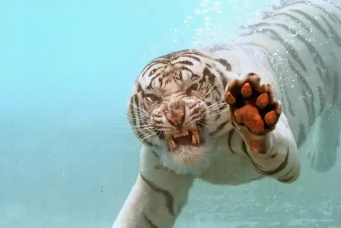 А вот у белых тигров это натуральная ошибка в программе, она в природе не прижилась вовсе. Последнего белого тигра выловили в Индии в 50-х. Сейчас только 4000 этих животных растасованы по зоопаркам всего мира. Но не стоит паниковать по поводу их редкости, ведь белые львы и тигры — это не отдельные виды, а всего лишь «бракованные» особи.