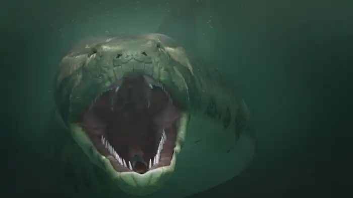 В реальности гигантское чудовище, длиной более 20 метров и весом в 60 тонн, пожирало любую живность – от рыбных косяков и дельфинов до огромных китов.