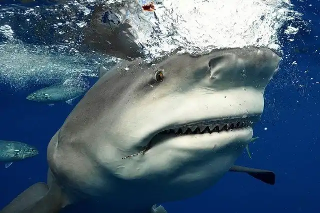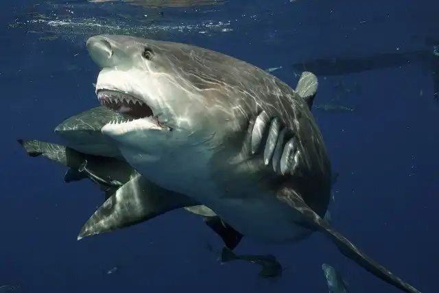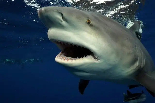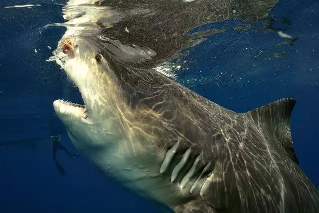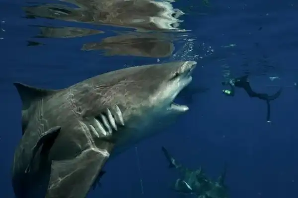 Дайвер столкнулся лицом к лицу с очень большой самкой акулы во время фридайвинга у побережья Флориды. 55-летнему Джону Муру удалось сделать несколько удивительных снимков гигантской акулы возле Джупитера в начале этого месяца. Он ухитрился запечатлеть огромную самку, демонстрирующую ряды острых как бритва зубов и желтоватые глаза, плавая среди стаи бычьих акул.