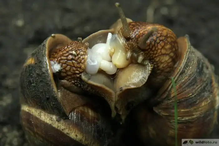В-третьих, не торопи события. Улитки занимаются ЭТИМ часами. Причём большая часть времени уходит на предварительные ласки. Брюхоногие покусывают друг друга, нежно щекочут своими «антеннами» и сливаются в смачном поцелуе, прежде чем перейти к самому процессу. Сам он, кстати, не менее затейливый.