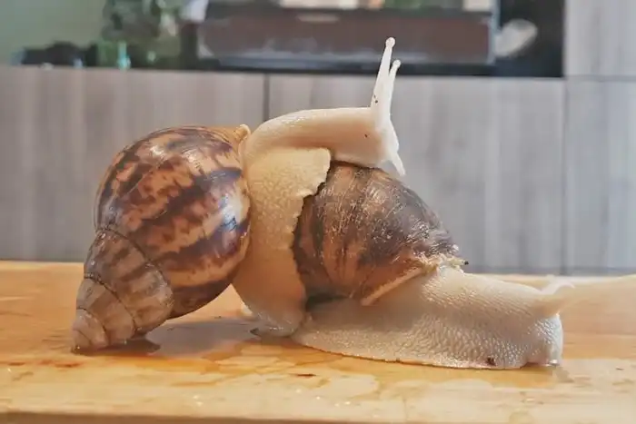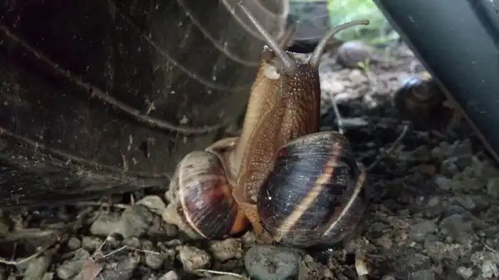 Никаких пошлостей! Просто одна улитка обнимает другую сзади.