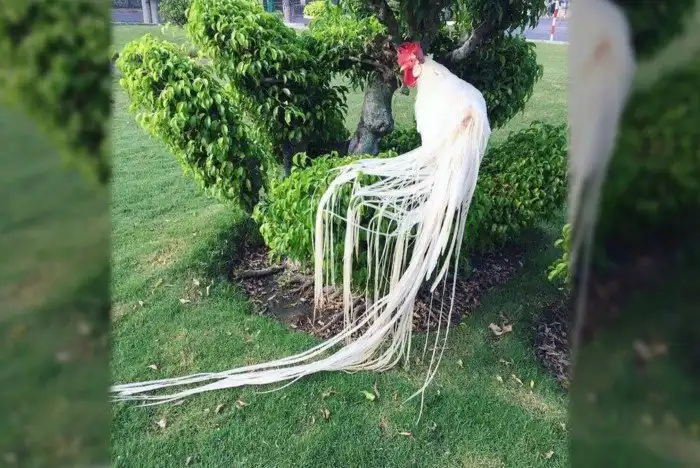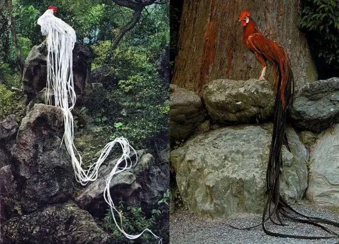 Из-за него хвост птахи может расти всю жизнь без остановок, прибавляя по метру в год. Местные не стали выдумывать пафосное имя своему эксперименту, но четко обозначили всю его суть. «Длиннохвостая курица» — так незамысловато звучит перевод с японского. Но как точно!