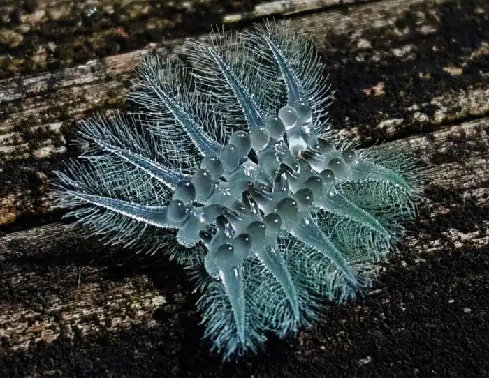 А все жутковатые выросты несут вполне практическую цель: они либо отделяются, оставаясь в конечностях незадачливого хищника, либо покрыты жалящими волосками. Рискнувшего напасть на эту передвижную крапивку остаётся только пожалеть.