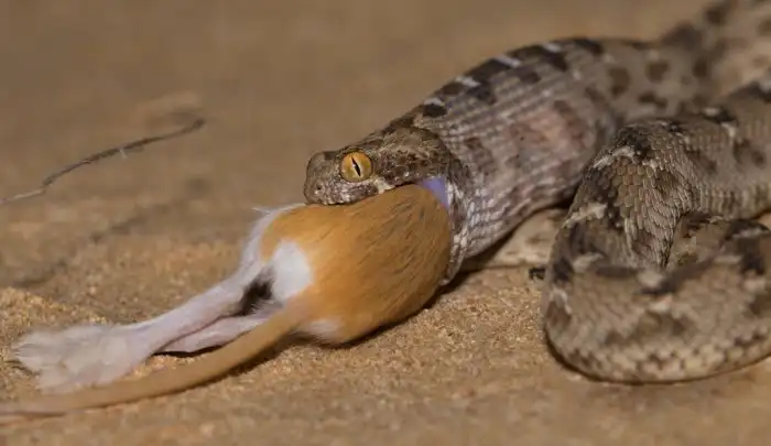 Окраска эфы может быть разной, всё зависит от мест её обитания. Но вот глаза всегда будут гигантскими.