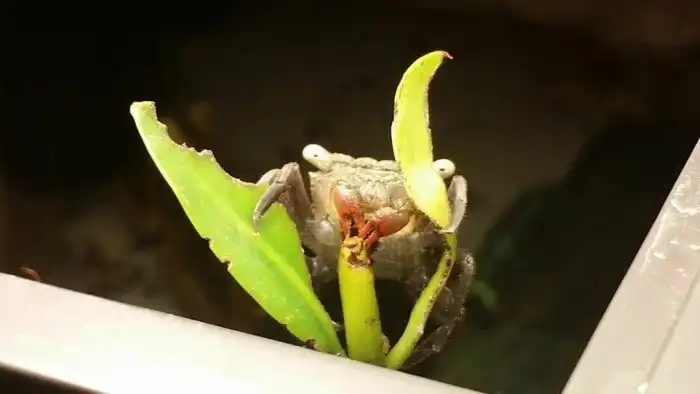 Мирный краб берёт клешни в руки и, с помощью заострённых ног со множеством жёстких волосков, взбирается по стволу дерева. Маленький альпинист очень старательно ползёт к вершине, его скорость может достигать одного метра в секунду!