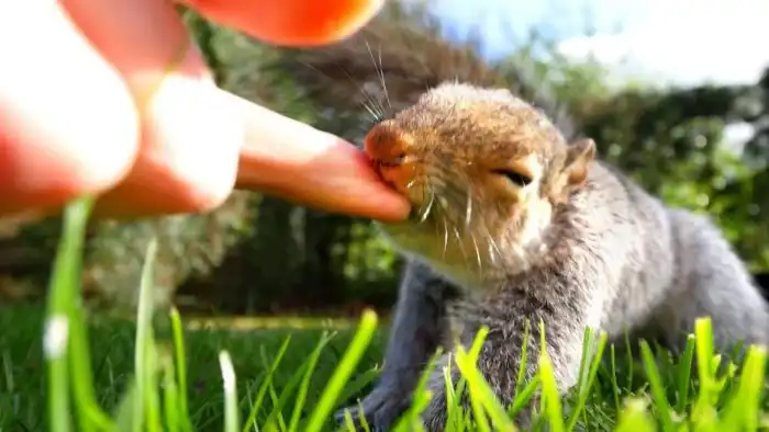 Важно помнить, что кормить белочек тоже нужно правильно. Грызунам нельзя обработанную и солёную пищу (жареную). А ещё им нельзя миндальные орехи - они для них сравнимы с ядом!