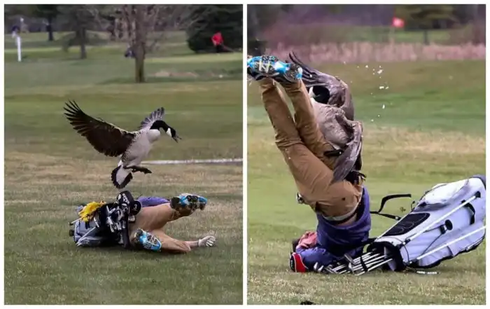 Добро пожаловать в Северную Америку, где канадский гусь aka канадская казарка вдохновился Палаником и исповедует принципы Бойцовского Клуба. Обладая невзрачным окрасом офисного работника, эта птица таит в себе дух настоящего воина. Веса в 6 кило и размаха крыльев почти в два метра вполне достаточно, чтобы зашугать человека.