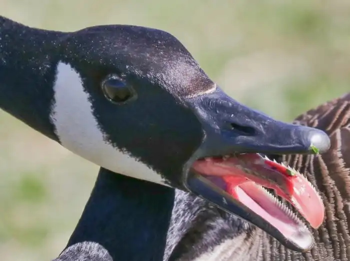 Клюв с "зубами" у канадских гусей тоже есть. Не только, чтобы щипать травку, но и щипать тебя за пятую точку!