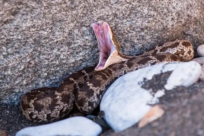 Ну и наконец, ядовитая вишенка на нашем торте, ползучая смЭрть во плоти — гюрза. И вы снова не поверите, но она тоже гадюка из рода Гигантских гадюк. И в отличие от предыдущих змей, эта красотка может устроить вам вечный отпуск.