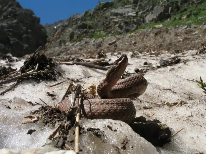 Ну, разумеется, говоря о ядовитых змеях на память тут же приходит гадюка. Серая такая, в ромбик. А что, если я скажу вам, что гадюк больше, чем один вид? У нас можно найти обыкновенную, степную и кавказскую (она же Казнакова), гадюку Никольского, гадюку Динника... А расползлись эти гадины по всем территориям нашей необъятной! Объединяет их достаточная пугливость и отсутствие агрессии — как и большинство змей, гадюки считают хорошей драку ту, которая не состоялась.