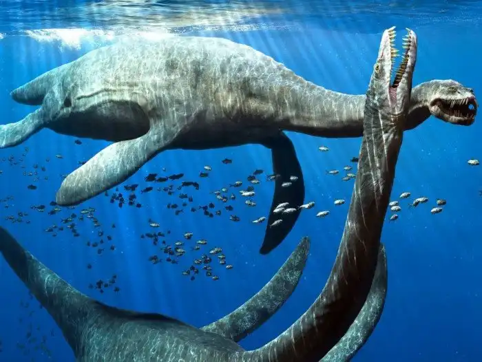 Да, выглядит ящер действительно так, будто населял загробные воды из древнегреческих легенд. Но животина эта более чем реальна. 86 миллионов лет назад она оккупировала море, делившее Северную Америку на две неравные половины. И никто не посмел возразить водному ящеру. Попробуй, вякни что-нибудь 12 метровой дуре весом в 4 тонны. А если вспомнить про пасть, полную острых игловидных зубов, то желание оспорить статус опаснейшего хищника умирает в зародыше.