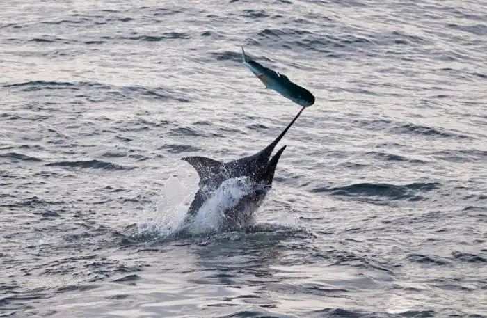 Но в океане всегда найдётся рыба побольше. И побыстрее. Например, голубой марлин или рыба-парусник. Первый разгоняется до 75 км/ч, вторая и вовсе является самой быстрой рыбой, она топит со скоростью 109 км/ч! Они-то и являются главными охотниками на корифен. Не считая людей, конечно.