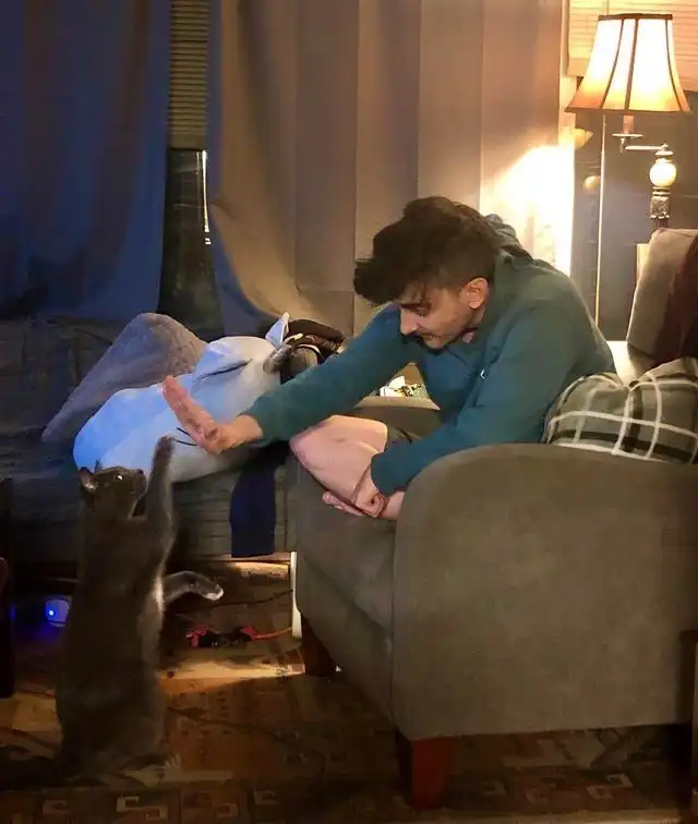 Мой муж очень трепетно заботится о нашем коте