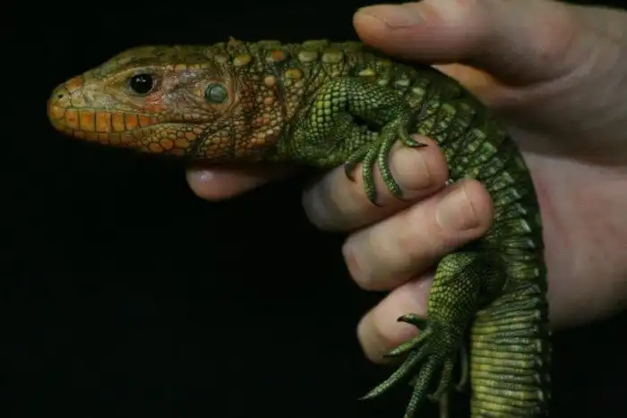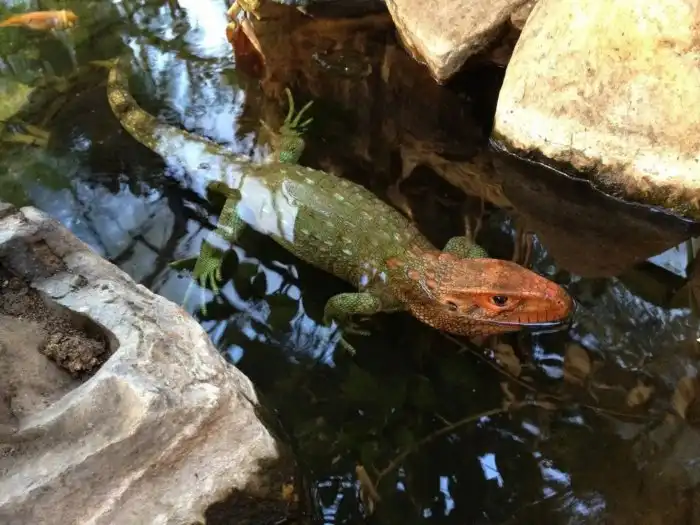 И вы только посмотрите, что из неё вымахало! Метровое туловище крокодила, приделанное к ярко-оранжевой башке ящерицы. Натуральный микро-динозавр, правда, больше умиляющий, чем вызывающий страх. И на весь край тысячи рек (окрестности Амазонки, то бишь) вы не найдёте рептилии круче!