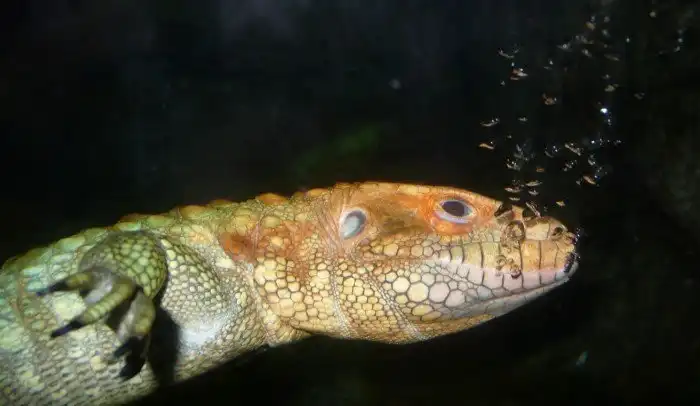 Считается, что третье веко — полупрозрачную перепонку на глазу — рептилия использует как подводные очки.