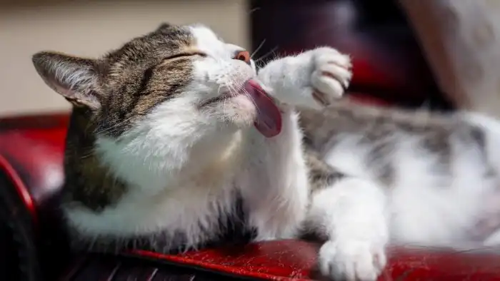 Хвост довольной кошки торчит вверх, выражение морды спокойное или игривое, шерсть приглажена, уши не изображают локаторы, но могут подергиваться, если в комнате раздаются незнакомые звуки. Часто питомцы топчутся на месте, трутся об хозяина, «охватывают» его хвостом — это признаки полного расположения, доверия и любви.