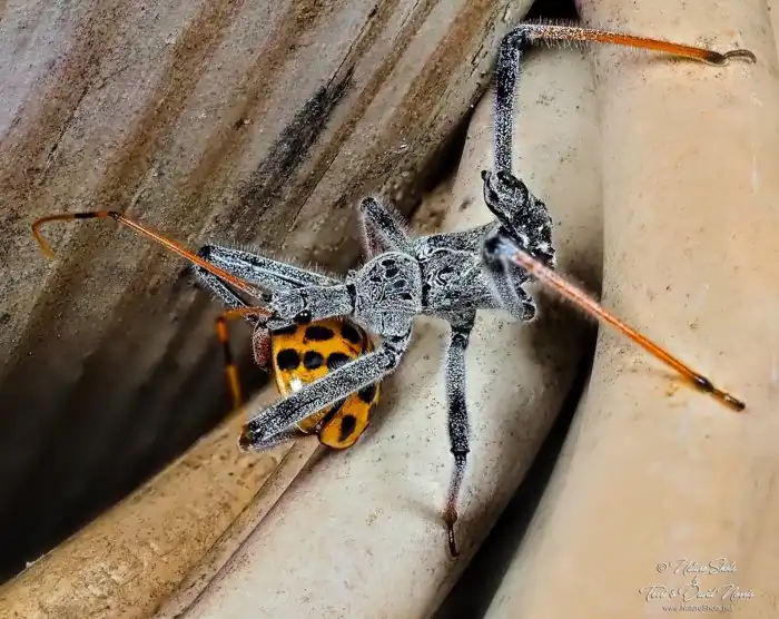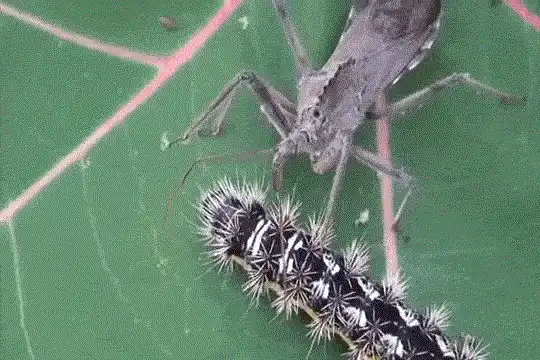 Подобравшись достаточно близко, клопчик резко хватает насекомое и тут же приводит смертный приговор в исполнение. Хищнец протыкает добычу острым хоботком и впрыскивает пищеварительный сок, который переваривает внутренности жертвы заживо.