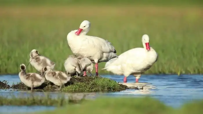 Как и лебеди, коскоробы рьяно относятся к защите потомства, нападая на противников в разы больше их самих.