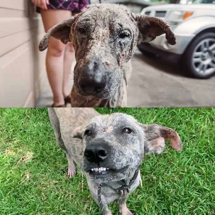 "Слепой, обезвоженный, слабый песик еле передвигался по улицам.. Ветеринары помогли ему восстановиться, а потом он обрел хозяев"