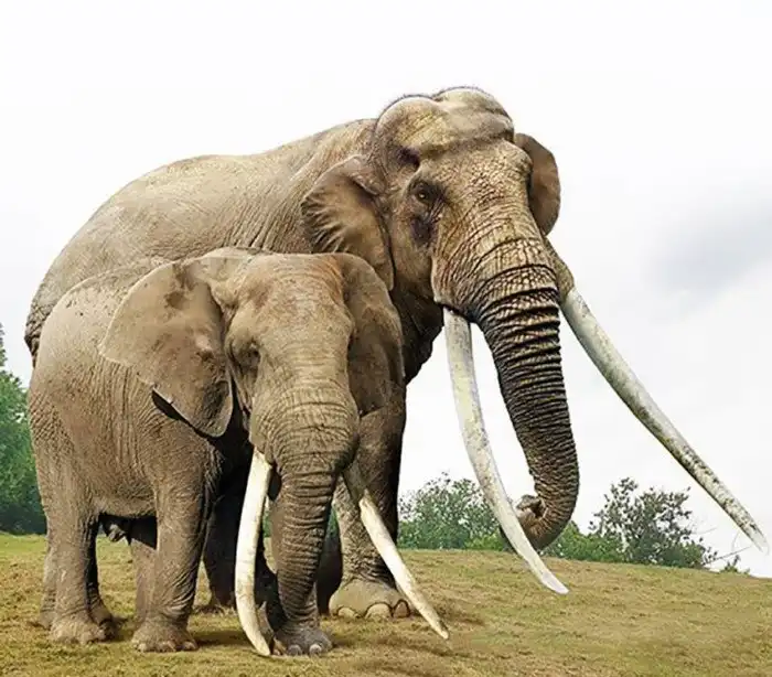 13. Африканский слон и вымерший прямобивневый лесной слон