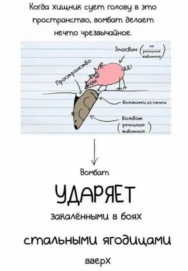 Вомбат защищается через жопу, но как он это делает?