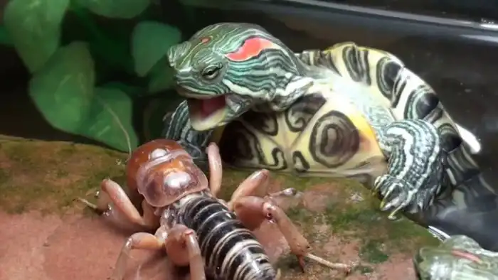 Красноухие черепахи — прекрасный пример, подтверждающий написанные выше тезисы. Обыватели скупают этих рептилий в промышленных масштабах, толком даже не разобравшись, что за животину приобрели. Дело в том, что милый черепашонок останется таковым совсем ненадолго. Очень скоро он превратится в 30 сантиметровую агрессивную бестию.