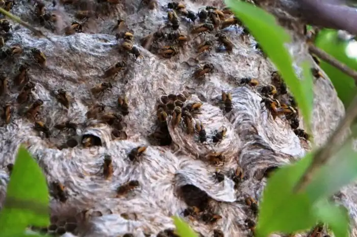 Как гласит народная мудрость: судить книгу по обложке — так себе идея. Вот и мексиканская медоносная оса на лицо ужасная, зато добрая внутри. Их девиз: дружба и труд — всё перетрут. Прямо как в СССР, только гнезда у них не разваливаются. Это при том, что диаметр бумажной постройки достигает до полуметра. В одном таком домике уживается до 20 тысяч насекомых!