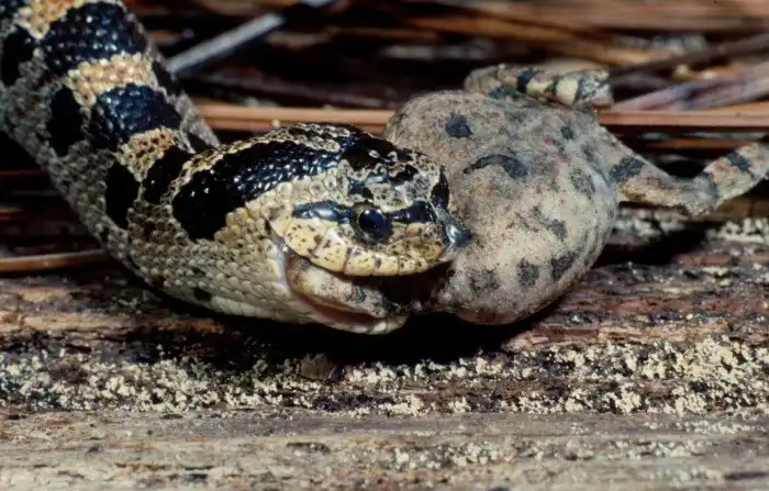 Увы, на одних хищниках невезучесть нашей героини не заканчивается. Свиноносая змея питается всякой мелочью: насекомыми, рептилиями и амфибиями. Верхнюю строчку в топе любимых блюд занимают жабы — они составляют до 80% от всего рациона. Но они же являются самым геморройным лакомством из всего списка меню!