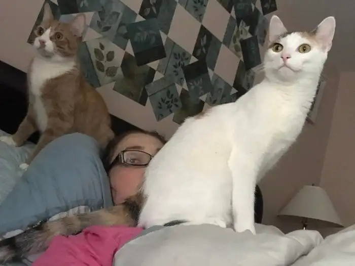 Судя по выражению морды, ей не очень нравится младшая сестра