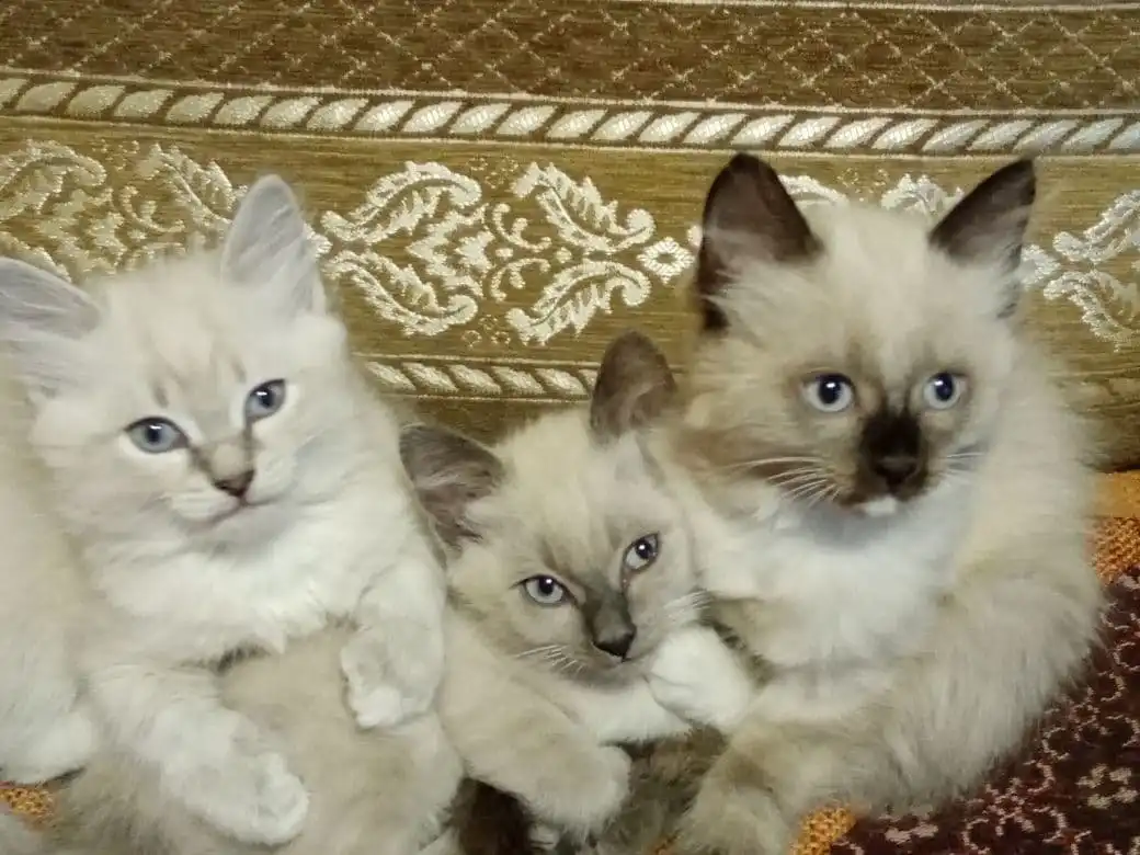 2 кошечки и один котик(самый белый) ищут дом. Мать сибирская, отец сиамский, в лоток ходят сами.