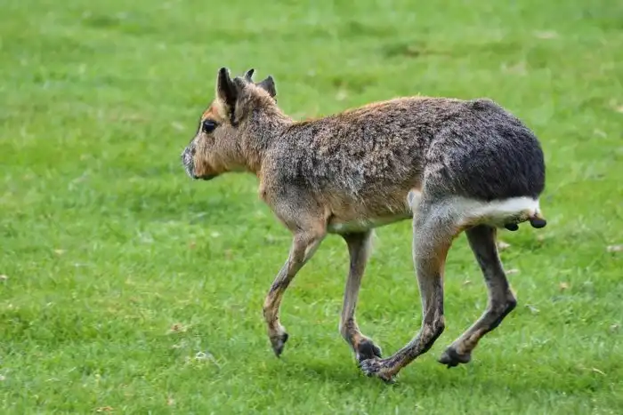 Патагонский заяц, несмотря на несуразный вид, во время опасности бегает очень быстро, до 70 км/ч.