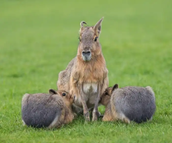 Чтобы сохранить и без того немногочисленное потомство, патагонские зайцы оставляют парный лайфстайл и создают ясли. Логика проста: кормящие самки следят за детёнышами, а их самцы — за хищниками. Такая группа может насчитывать до 60 особей. И некоторые детёныши пользуются столпотворением.