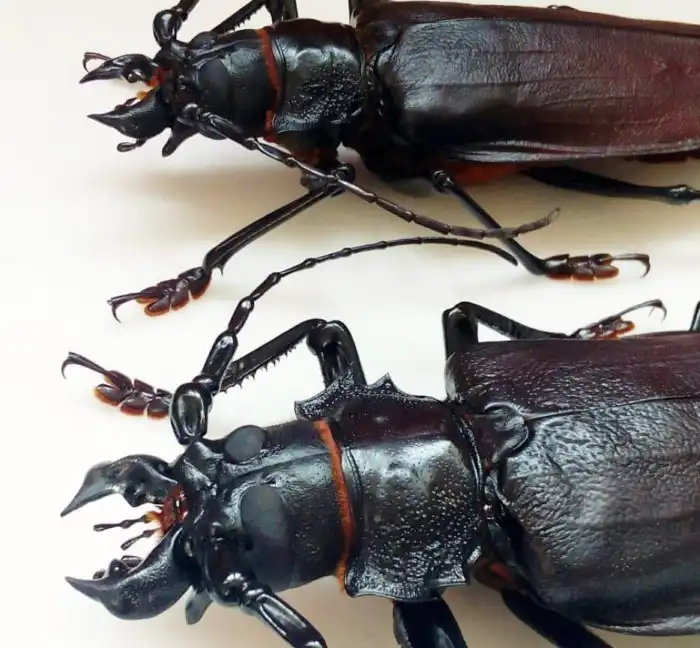 Это при том, что жук нифига не маленький. В среднем длина их тела колеблется от 10 до 15 сантиметров, но некоторые особи, по неподтверждённым данным, вырастают в полтора раза больше! Даже если опираться на сухие и достоверные цифры, дровосек-титан — один из крупнейших жуков планеты.