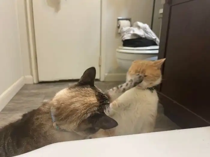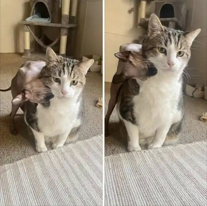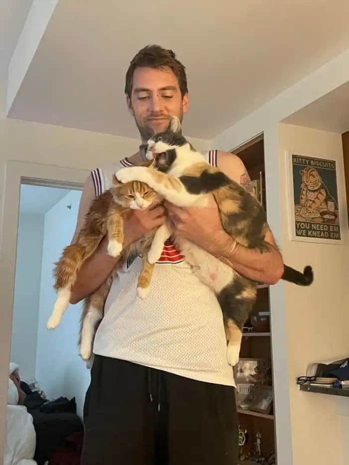 «Один мой вредный кот сидит своей пушистой задней точкой на другом моём вредном коте»