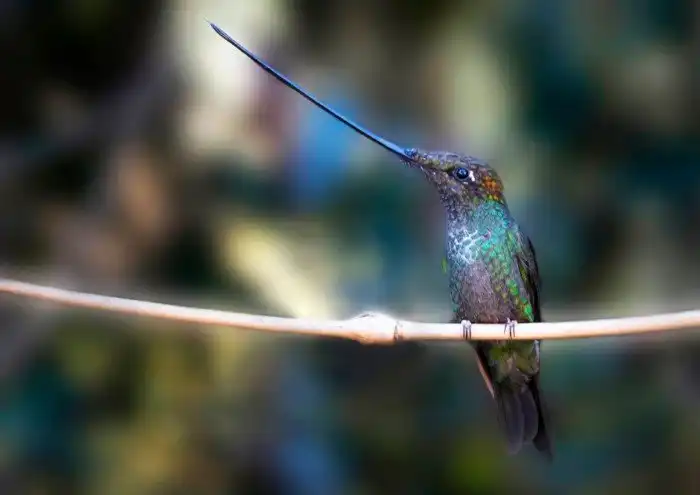 Загнутая кверху игла длиной более 12 сантиметров. Это сравнимо с клювом уток и воронов. Но если у этих ребят щебетало — гармоничное продолжением тела, то колибри-мечеклюв состоит из него на 50%!