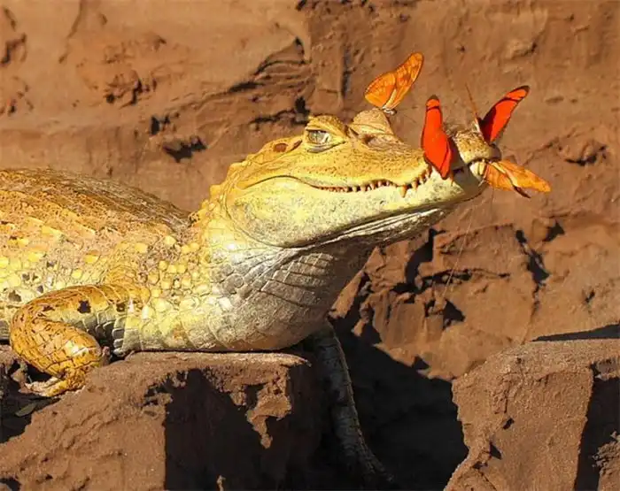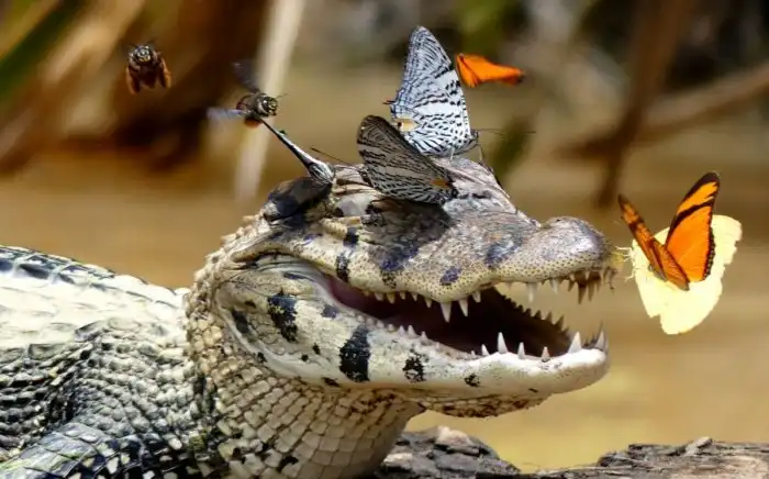 Доказать страсть бабочек к холоднокровным легко. Достаточно порыться в интернете, и по запросу выскочит уйма картинок с крокодилами, облепленными букашками. На настойчивые приставания рептилии реагируют по-настоящему стоически — не пытаются прихлопнуть назойливую компанию, не сгоняют их и вообще никак не реагируют на присутствие насекомых. Их шкура слишком толстая, вряд ли они вообще их чувствуют.