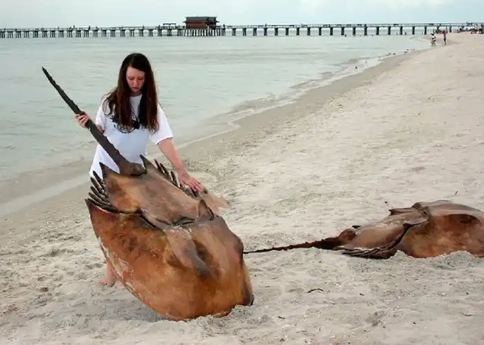 Их используют, как доноров. Собирают с каждого мечехвоста по 30% крови и после этого отпускают обратно в океан. И мечехвост быстро восстанавливается.