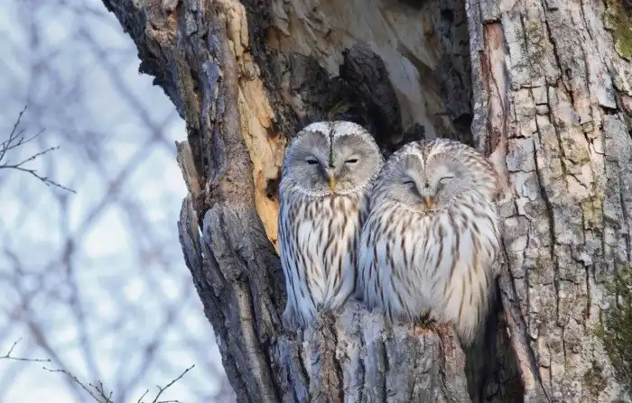 В сложном деле защиты своих малышей, неясыти полагаются не только на отчаянную агрессию. Совы формируют устойчивые моногамные пары, прячут яйца в подгнивших пнях и старых гнёздах хищных птиц. Даже на крыло малышей ставят чрезвычайно быстро: уже через месяц после рождения совята становятся взрослыми особями.