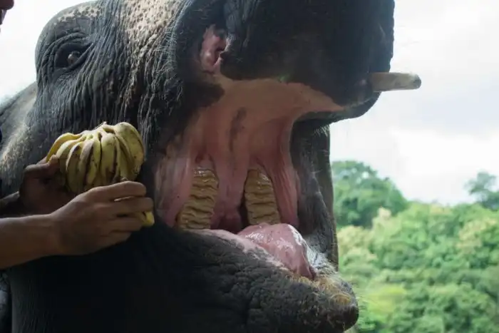 У слонов, в отличие от большинства млекопитающих, зубы меняются 3 раза за жизнь. С молочных на коренные, с коренных, на второй комплект коренных. Но даже это не спасает животных от беззубости — к 60-70 годам их третий комплект зубов стирается. Увы, больше слоны не смогут кушать, как прежде :(